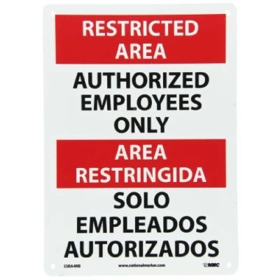 NMC ESRA4RB Bilingual OSHA Sign, Legend"RESTRICTED AREA AUTHORIZED EMPLOYEES ONLY", 10" Length x 14" Height, Rigid Plastic, Black/Red on White