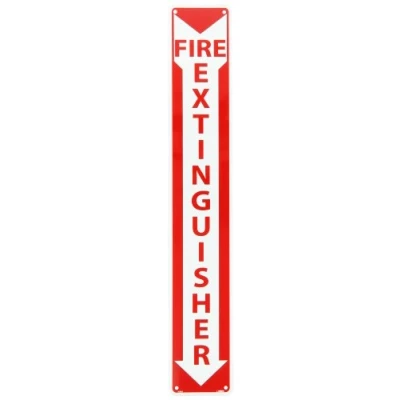 Safety Signage: the fire extinguisher sign is commonly used in the commercial and residential buildings to enforce fire safety regulations. It clearly informs the onlooker about the location of the fire extinguisher Material: the sign is made from standard aluminum with baked-on enamel on both sides that allows printing on both sides. Non-corrosive and weatherproof, the sign has radius corners and pre-drilled mounting holes High Visibility: the sign has the legend “FIRE EXTINGUISHER” in clear, bold letters with a down arrow graphic to ensure clear visibility. It is a vertical face sign that projects 90-degree from the wall to enable viewing from single side Product Specification: the rectangular alumium sign has white text on a red base with red graphic on a white base. The sign is 0.040 in. thick, 4 in. wide, and 24 in. high Sign Muscle: this fire extinguisher signage has an NMC Sign Muscle coating to protect the text against fading, scratches, scuffing, mold, and moisture. The UV-cured, clear coating creates a strong bond and also boosts the color and clarity