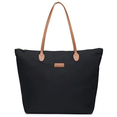 NNEE Water Resistant Light Weight Nylon Tote Bag Handbag Medium Size, Black