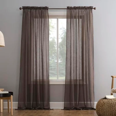 No. 918 Erica Crushed Sheer Voile Rod Pocket Curtain Panel, 51" x 63", Cocoa Brown