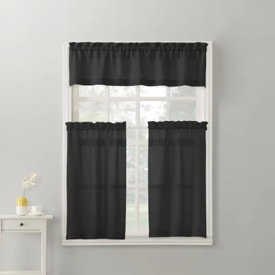 Soft microfiber fabric Gently filters light while enhancing privacy Rod pocket design allows for easy hanging on a standard curtain rod Machine washable Also ideal for bathroom windows Includes 1 valance and 2 tier curtains