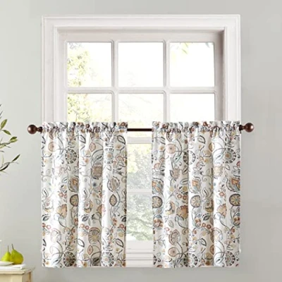 Jacobean pattern design Includes 2 tier curtains. Valance sold separately. Semi-sheer fabric gently filters light while enhancing privacy Machine washable Rod pocket design allows for easy hanging on a standard curtain rod