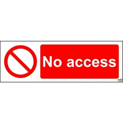No Access Safety Sign Self adhesive sticker 150mm x 50mm Remove backing film and apply to dry, smooth, oil free surface. Digitally printed and laminated for extra durabillity