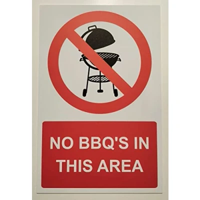 No BBQ's in This Area Safety Sign Self Adhesive Sticker (200mm x 150mm)