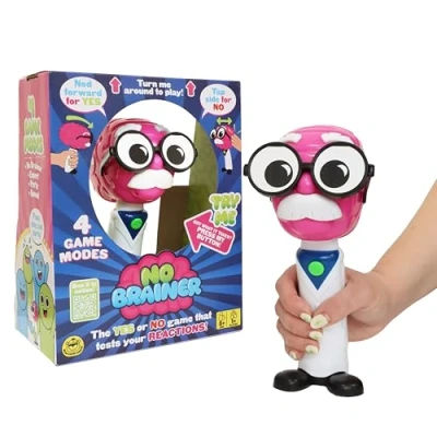 FAMILY GAMES - Pick up and play – Quick rounds, no complicated setup and endless replay value with no two games the same. FUNNY GAMES - Endless laughs, instant chaos – Perfect for solo play or family nights, and competitive friends. THINK YOU CAN DO IT? Simple to play, hard to master – A game everyone thinks they can win… until the pressure hits! GIFT - Great for all ages 8+– Kids, teens, adults—everyone loves a No Brainer! Fantastic gift for kids and families who love games. GAMES - 4 Exciting Game Modes No Brainer Mode – Beat your own high score in a solo challenge. Party Mode – Pass-and-play fun for groups and game nights! Expert Mode – Harder questions for quick-thinking pros. Speed Mode – 10 right answers, zero time to think, Manufacturer: Golden Bear Toys