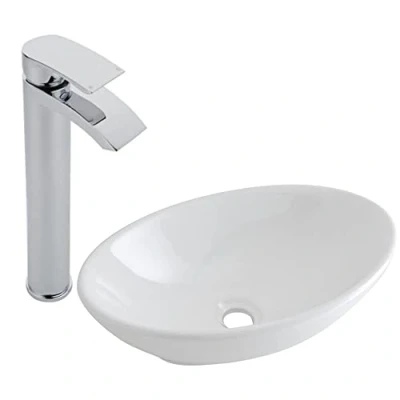 No Brand Milano Altham Modern 520mm x 320mm White Ceramic Oval Countertop Bathroom Basin Sink With High Rise Tap
