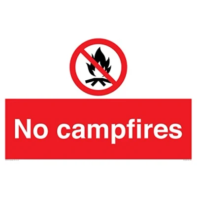 P045 : No campfire This sign is made from vinyl / sticker Air Release vinyl makes it easy to stick to flat, clean surfaces without bubbles. Not for rough, plastic or dusty surfaces. A2 landscape Sign Text: No campfires