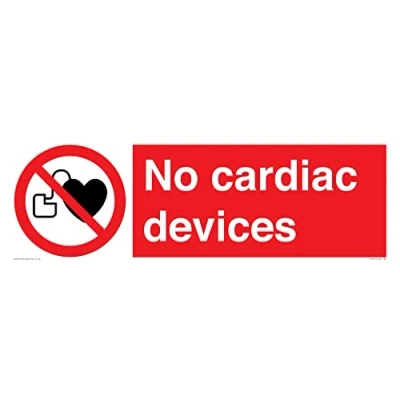 P007 : No access with cardiac devices This sign is made from vinyl / sticker Air Release vinyl makes it easy to stick to flat, clean surfaces without bubbles. Not for rough, plastic or dusty surfaces. 62 landscape Sign Text: No cardiac devices