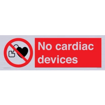 P007 : No access with cardiac devices This sign is made from vinyl silver sticker 62 landscape Sign Text: No cardiac devices
