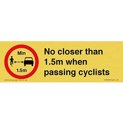 No closer than 1.5m when passing cyclists Sign 150x50mm L15