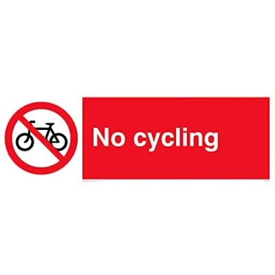 P913 : No cycling This sign is made from vinyl high tack A stickier sticker. Uses a stronger adhesive to make it more suitable for plastic surfaces like Wheelie Bins or where the sticker might get rubbed. 31 landscape Sign Text: No Cycling