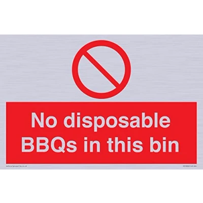 P001 : General Prohibition This sign is made from vinyl silver sticker A4 landscape Sign Text: No disposable BBQs in this bin
