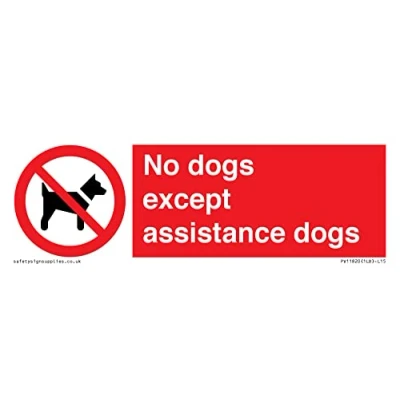 P021 : No dogs This sign is made from plastic semi rigid 1mm self adhesive 15 Sign Text: No dogs except assistance dogs