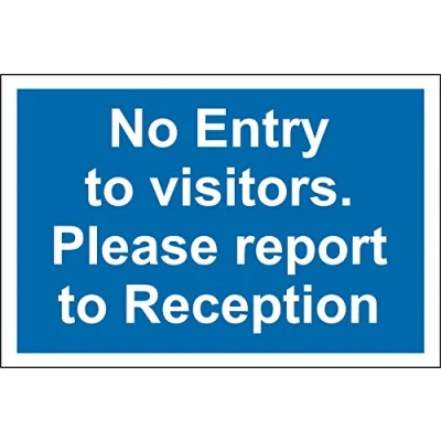 No entry to visitors please report to reception sign 1.2mm rigid plastic 300mm x 200mm Digitally printed and laminated for extra durabillity Drill and screw in position or use double sided tape to mount onto suitable surface.