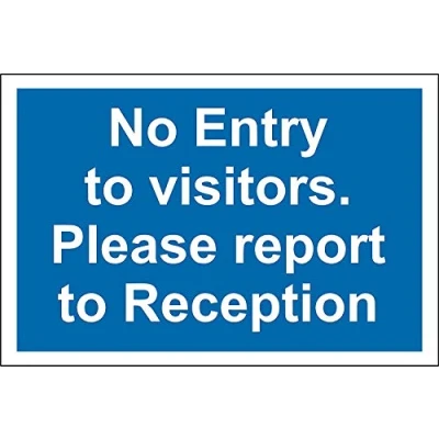 No entry to visitors please report to reception sign 3mm Aluminium sign 300mm x 200mm Digitally printed and laminated for extra durability 10mm Radius rounded corners, no sharp edges, Manufacturer: KPCM Display ltd