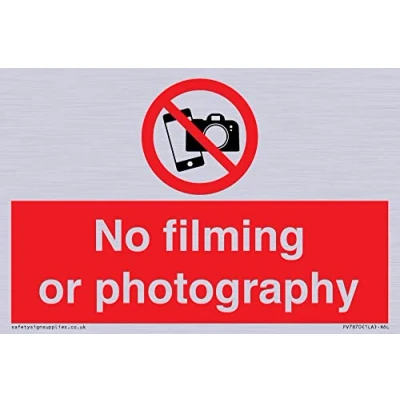 No filming or photography Sign 150x100mm A6L