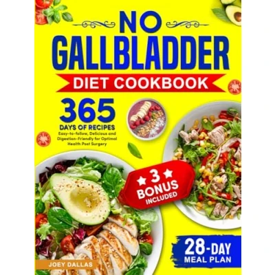 No Gallbladder Diet Cookbook: 365 Days of Easy to follow, Delicious and Digestion Friendly Recipes for Optimal Health Post Surgery 28 Day Meal Plan Included!