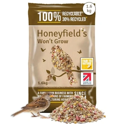 No Grow Bird Seed Mix for Wild Birds Food Small Patios and Non Grass Areas, Kibbled Sunflower Hearts, Peanuts, Ground Feeding Tables (1.6kg) Honeyfield’s