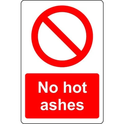 No hot ashes Safety sign Self adhesive sticker Digitally printed and laminated for extra durability Remove backing film and apply to dry, smooth, oil free surface.