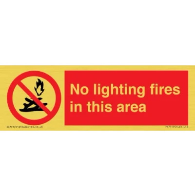 P504 : No lighting of fires This sign is made from vinyl gold sticker Gold metal effect sticker for flat, clean surfaces. Not for rough, plastic, or dusty surfaces. 15 landscape Sign Text: No lighting fires in this area