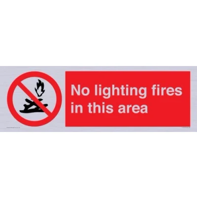 P504 : No lighting of fires This sign is made from vinyl silver sticker 62 landscape Sign Text: No lighting fires in this area