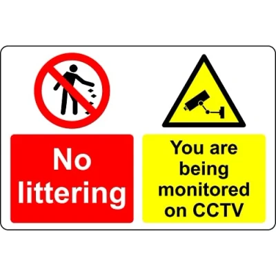 No littering you are being monitored on CCTV Safety sign 1mm Plastic sign Digitally printed for extra durability Drill and screw in position or use double sided tape to mount onto suitable surface.