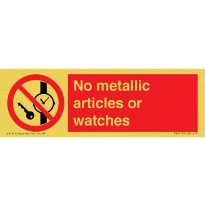 No metallic articles or watches Sign 150x50mm L15