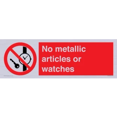 P008 : No metallic articles or watches This sign is made from vinyl silver sticker 41 landscape Sign Text: No metallic articles or watches