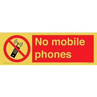 P013: No Activated Cell Phones This sign is a gold colored vinyl decal Gold metal effect decal for flat clean surfaces. Not for rough, plastic or dusty surfaces. 31 Sign text: No Cell Phone