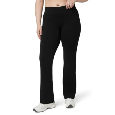 No Nonsense Women's Flared Leggings & Lounge Pants, Stay in Place Wide Waistband, Cotton Blend, Show Coverage Yoga, Black, S