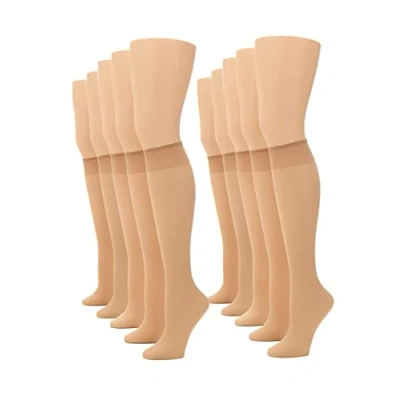 Sheer nylon knee high Pack includes 10 pairs Constructed with premium nylon for ultimate fit, comfort and durability Comfort top Sheer toe