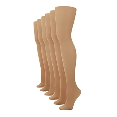 No Nonsense Women's Sheer to Waist Pantyhose, Hosiery, Tan 6 Pair Pack, Plus (Pack of 6)