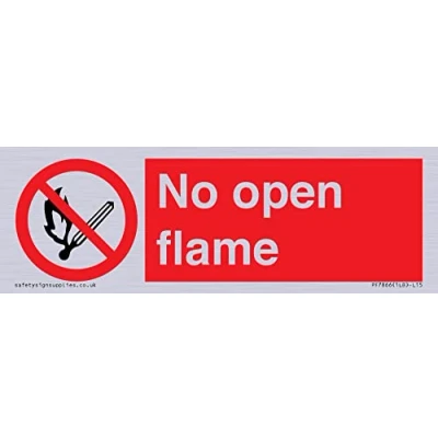 P003 : No open flame This sign is made from vinyl silver sticker 15 landscape Sign Text: No open flame