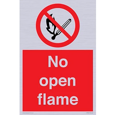 P003 : No open flame This sign is made from vinyl silver sticker A4 portrait Sign Text: No open flame