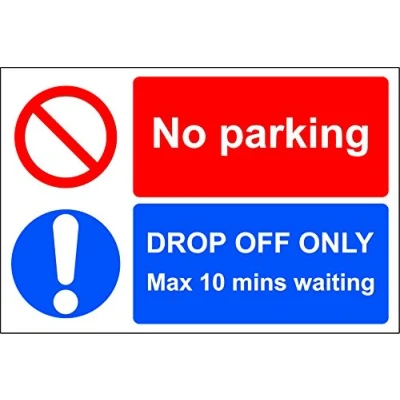No Parking Drop Off only Max 10mins Waiting Sign 1.2mm Rigid Plastic 300mm x 150mm