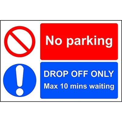 No parking Drop off only Max 10mins waiting sign 3mm Aluminium 300mm x 200mm