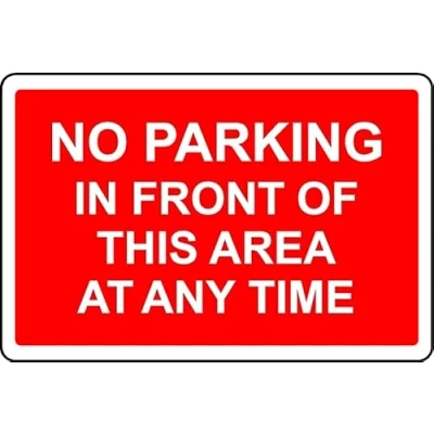 No Parking in Front of This Area at Any time Safety Sign 1mm Plastic (300mm x 200mm)
