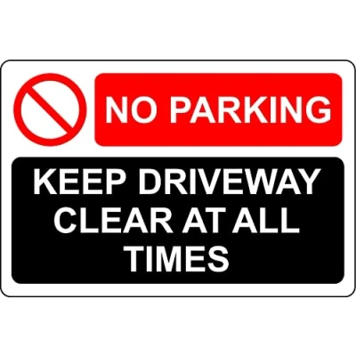 No parking keep driveway clear at all times sign 1mm Plastic sign Digitally printed for extra durability Drill and screw in position or use double sided tape to mount onto suitable surface.
