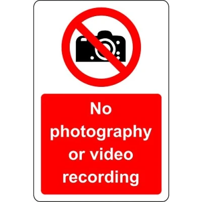 No photography or video recording safety sign 1.2mm Rigid plastic 300mm x 200mm