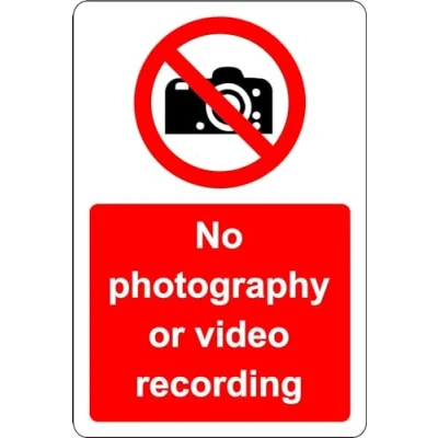 No photography or video recording safety sign 1.2mm Rigid plastic 300mm x 200mm Case (Pack of 5)