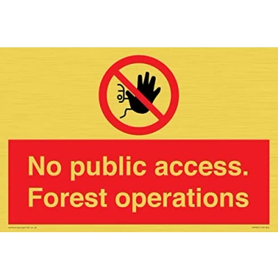 P905 : No access This sign is made from vinyl gold sticker Gold metal effect sticker for flat, clean surfaces. Not for rough, plastic, or dusty surfaces. A4 landscape Sign Text: No public access. Forest operations