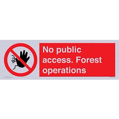 P905 : No access This sign is made from vinyl silver sticker 41 landscape Sign Text: No public access. Forest operations
