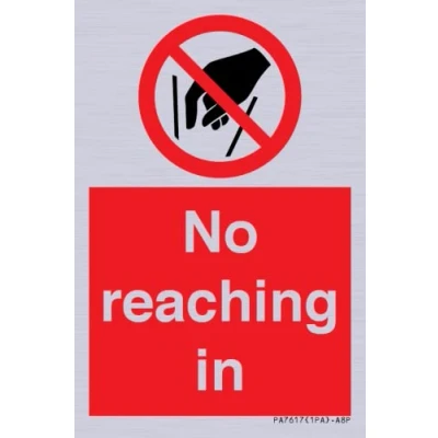P015 : No reaching in This sign is made from vinyl silver sticker A8 portrait Sign Text: No reaching in
