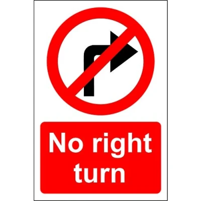 No right turn Safety sign 1.2mm Rigid plastic 300mm x 200mm Digitally printed for extra durability Drill and screw in position or use double sided tape to mount onto suitable surface., Manufacturer: KPCM Display ltd