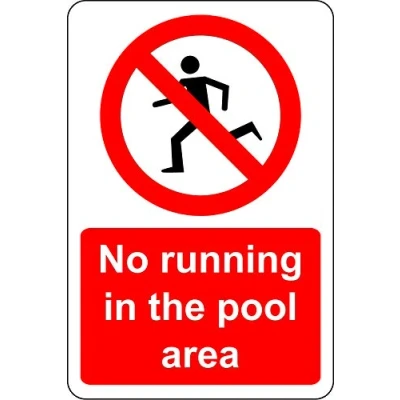 No running in the pool area Swimming Safety sign Self adhesive sticker 300mm x 200mm