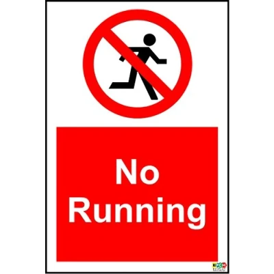No Running Sign Self adhesive sticker 300mm x 200mm Remove backing film and apply to dry, smooth, oil free surface. Digitally printed and laminated for extra durabillity