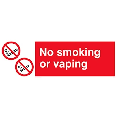 P002 : No smoking,P927 : No e-cigarettes / vaping This sign is made from vinyl high tack A stickier sticker. Uses a stronger adhesive to make it more suitable for plastic surfaces like Wheelie Bins or where the sticker might get rubbed. 31 landscape Sign Text: No smoking or vaping