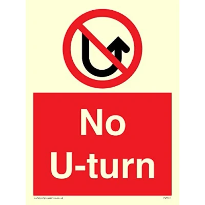 P906 : No aerosol This sign is made from vinyl photoluminescent sticker A5 portrait Sign Text: No U-turn
