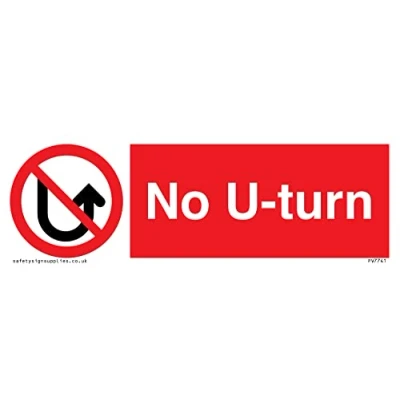 P906 : No aerosol This sign is made from vinyl / sticker Air Release vinyl makes it easy to stick to flat, clean surfaces without bubbles. Not for rough, plastic or dusty surfaces. 15 landscape Sign Text: No U-turn