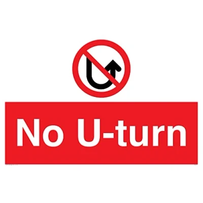 P906 : No aerosol This sign is made from vinyl / sticker Air Release vinyl makes it easy to stick to flat, clean surfaces without bubbles. Not for rough, plastic or dusty surfaces. A2 landscape Sign Text: No U-turn